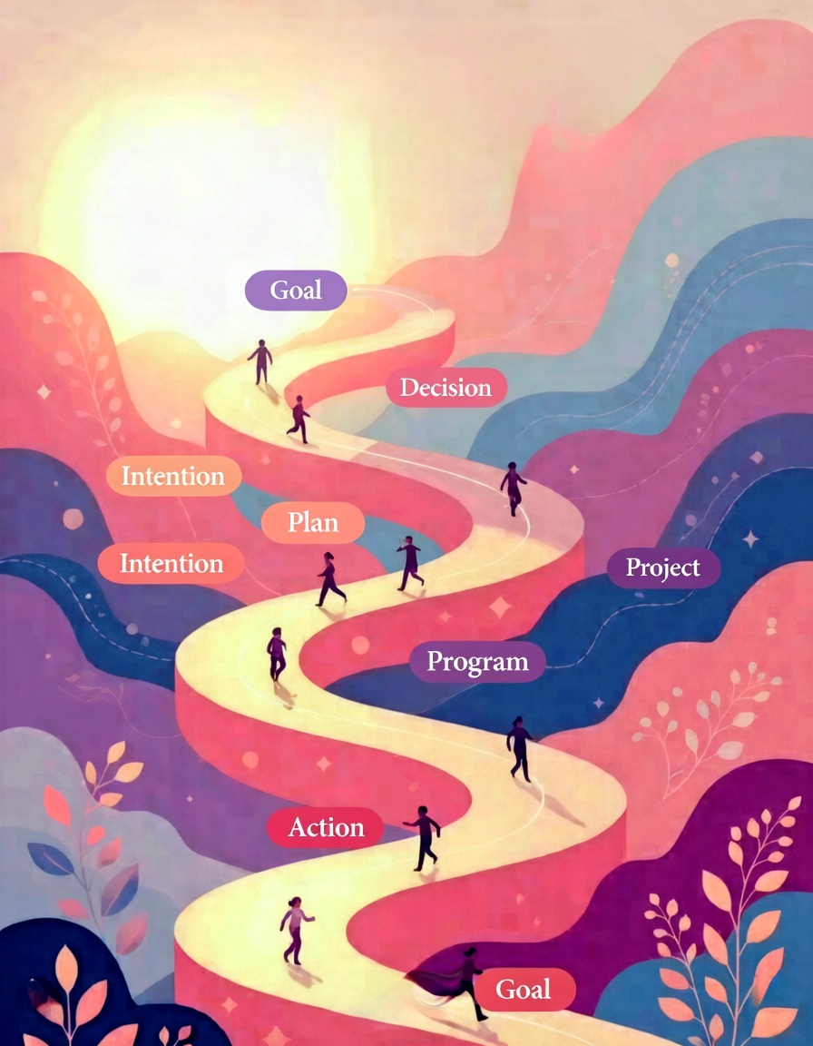 ЖЕЉА → ОДЛУКА → НАМЕРА → ПРОЈЕКАТ → ПЛАН → ПРОГРАМ → АКЦИЈА → ОСТВАРЕЊЕ